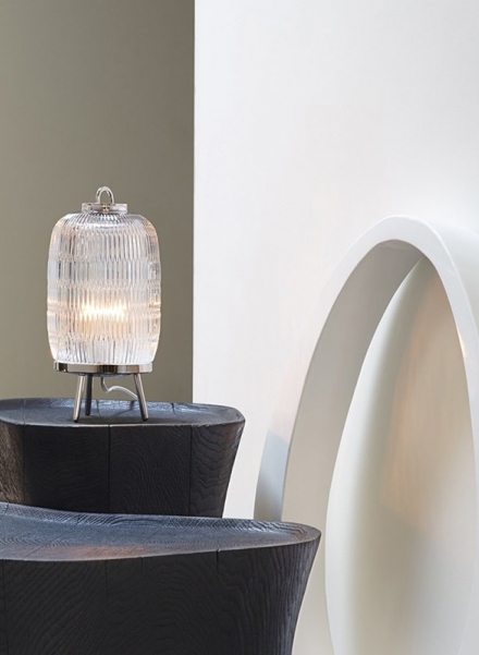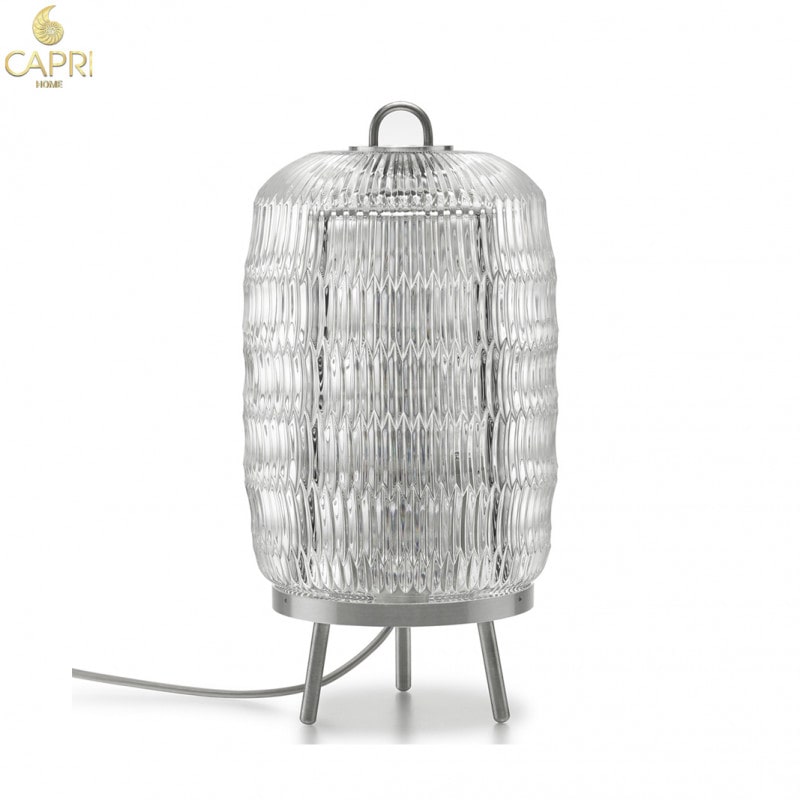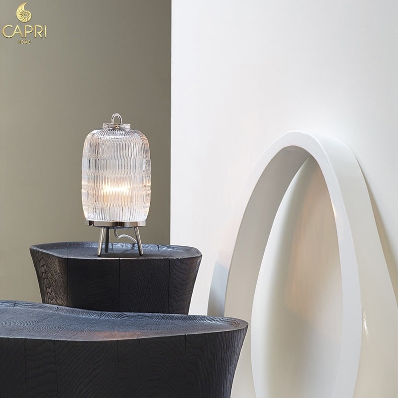 Chiếc đèn bàn Celeste này có một thiết kế kiểu vô cùng đặc biệt,kiểu dáng của nó như một chiếc bình trong suốt,được trang trí mặt ngoài với cấu trúc cắt pha lê hạt gạo.Phần bệ đỡ và chân đèn là kim loại hoàn thiện chất lượng cao,phủ crom,dây nguồn trong suốt.