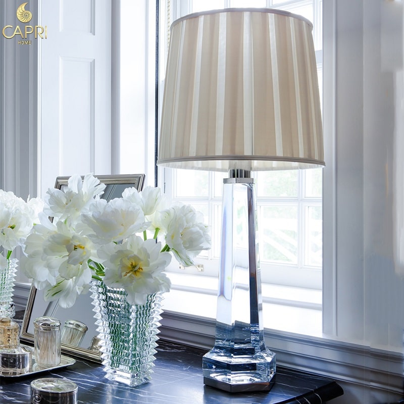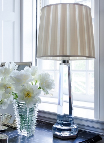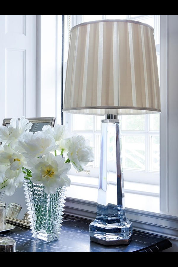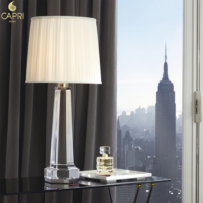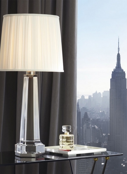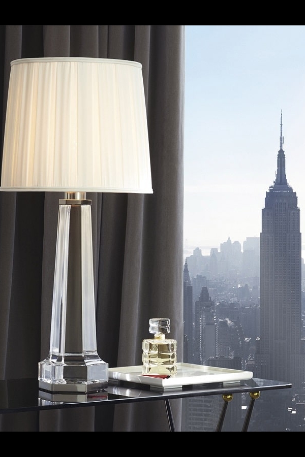 Được nhà thiết kế Gilles &Boissie tạo ra cho khách sạn Baccarat ở New York,chiếc đèn này nổi bật vượt thời gian với phần thân bằng pha lê có độ tinh khiết cực kỳ cao,các mặt cắt vát thẳng đứng mịn màng, phần chân đế kiểu lục giác phình to hơn khiến nó trở nên vững trãi,chụp đèn bằng vải cao cấp,khung cơ sở của chụp đèn là thép không rỉ mạ crom.