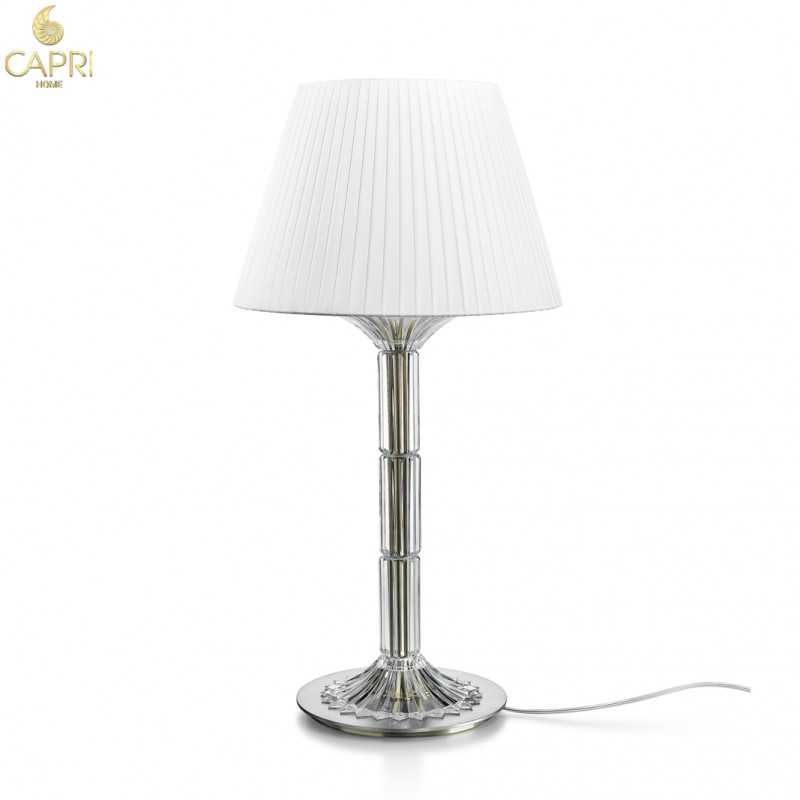 Nó hội tụ đủ các yếu tố thẩm mỹ của Nội Thất Baccarat, đặc biệt là thân cắt vát pha lê rõ ràng.Mặt gương bằng thép không gỉ được đánh bóng lồng hoàn toàn trong ống pha lê tạo sự phản chiếu ánh sáng đặc biệt,nó sử dụng 1 bóng đèn led với chụp đèn bằng vải lụa xếp li cao cấp. Chữ ký Baccarat và nhà thiết kế Mathias có trên phần chân đế.