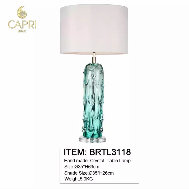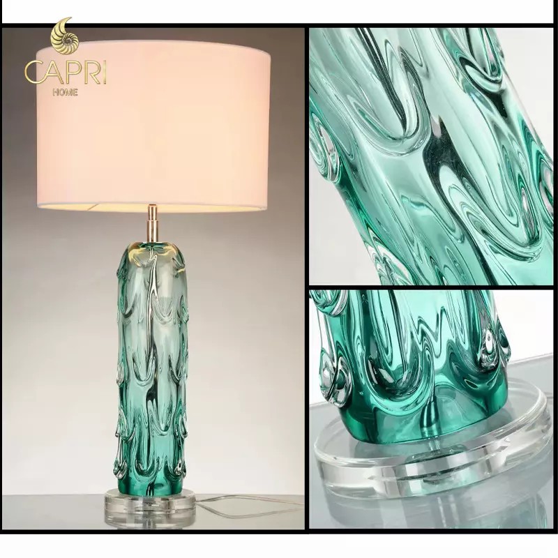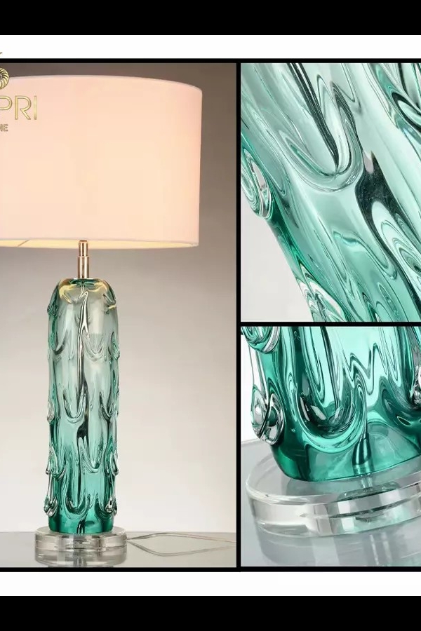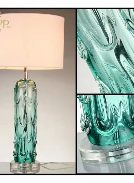 Đèn bàn cao cấp được thiết kế đẹp mắt, đèn bàn thủy tinh Pontchartrain nổi bật với màu xanh lam làm tăng thêm điểm nhấn màu sắc nhẹ nhàng cho không gian. Các vân hình trống màu trắng tạo điểm nhấn trang nhã cho phần đế, đồng thời lọc ánh sáng nhẹ nhàng, tạo ra ánh sáng ấm áp. Đèn Ponchatrain đặt trên đỉnh đế acrylic hình tròn trong suốt thể hiện cột hình thủy mạc xếp tầng, đón ánh sáng vào ban ngày và tạo ra cảnh tượng buổi tối tuyệt đẹp khi được thắp sáng.