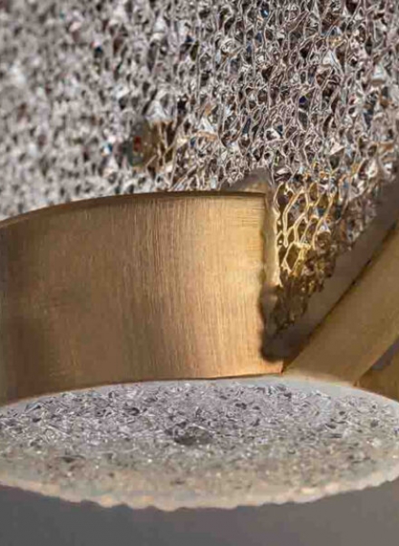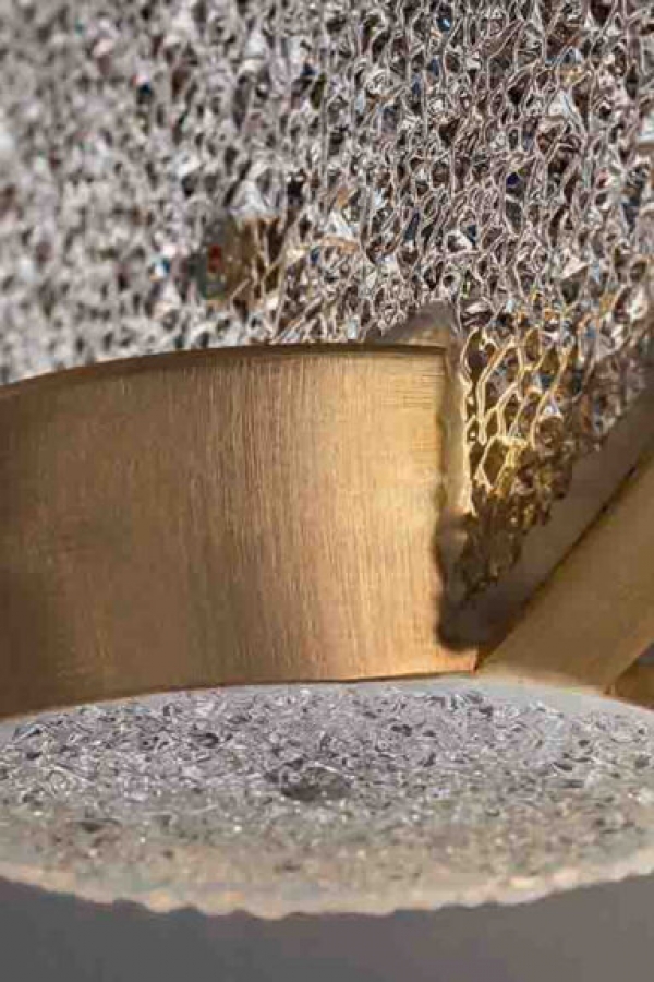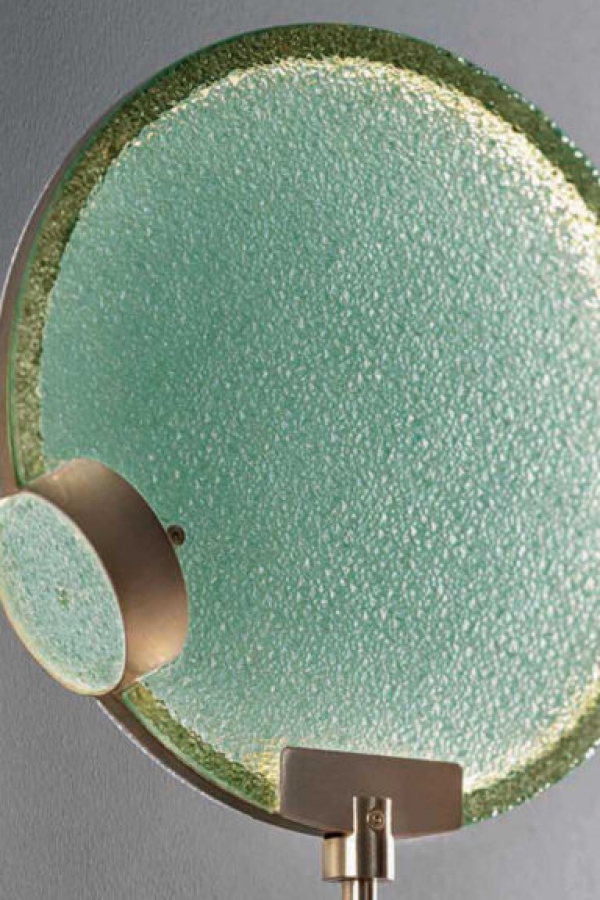 Painted metal structure with prism glass or spectrum diffuser.