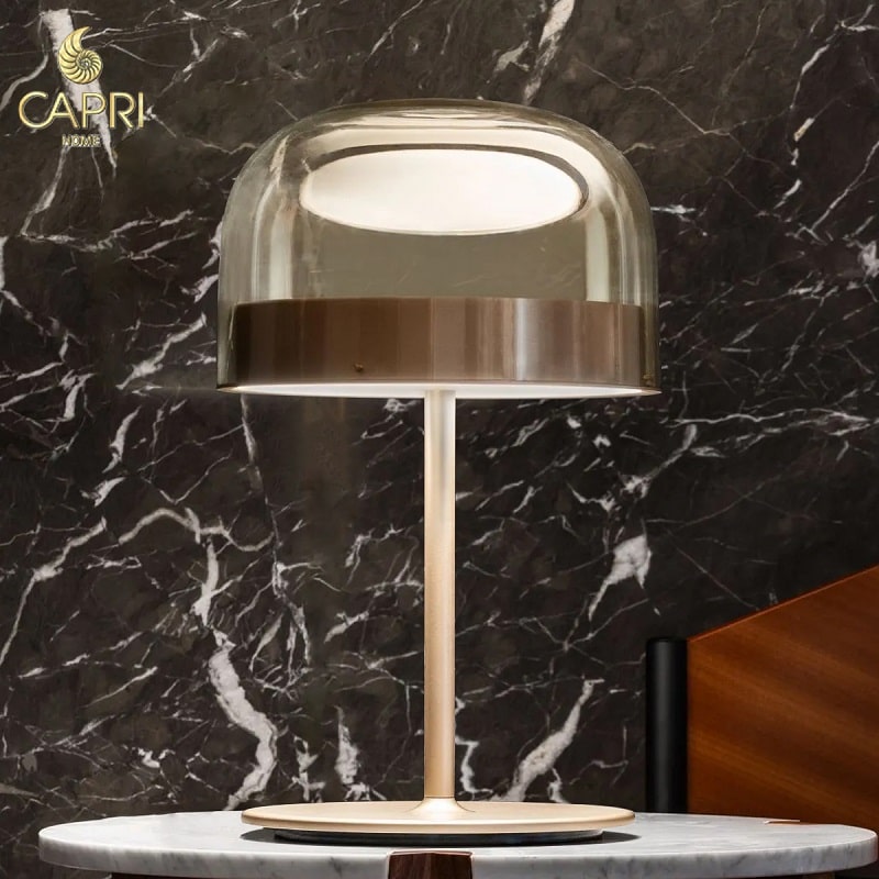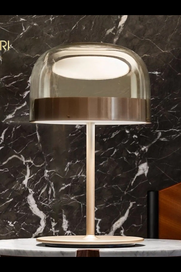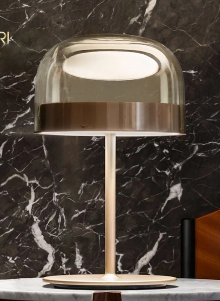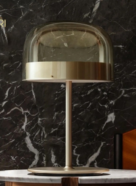 Đèn bàn cao cấp Equatore là một phiên bản hiện đại của đèn cổ điển với bóng thủy tinh. Trong khi abat-jour truyền thống sử dụng bóng râm để chứa nguồn sáng bên trong, thì trong họ đèn này, bóng râm trống rỗng một cách nghịch lý và gợi ý, với ánh sáng được tạo ra bởi hai đĩa phát sáng đặt bên trong một dải kim loại trung tâm, có thể nhìn thấy trên bóng, điều đó gợi lên đường của đường xích đạo. Ánh sáng do đèn Led tạo ra, nhờ các màn hình bên trong được sắp xếp thành từng lớp, được phân bổ đều đặn trên bề mặt của các đĩa, chiếu sáng chúng một cách kỳ diệu. Đĩa dưới hướng công suất ánh sáng xuống dưới, đĩa trên chiếu sáng nắp kính cho ánh sáng khuếch tán dịu nhẹ. Có sẵn ở các mẫu bàn, sàn và trần, với hai kích thước và hai màu: phiên bản màu xám lạnh hơn với khung chrome tối.